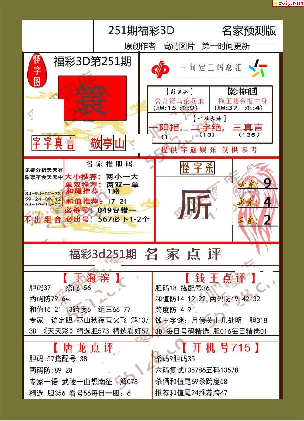 > 25年251期福彩3d牛彩名家预测图谜