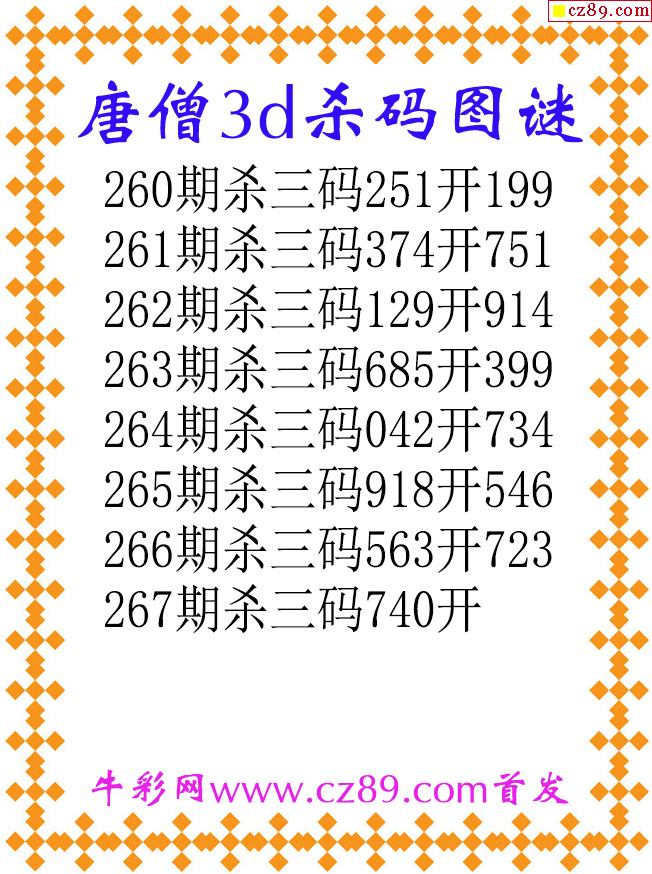 唐僧杀码25267期3d原创图谜