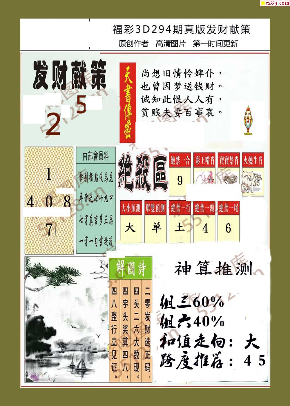 > 发财献策25年294期福彩3d字画报