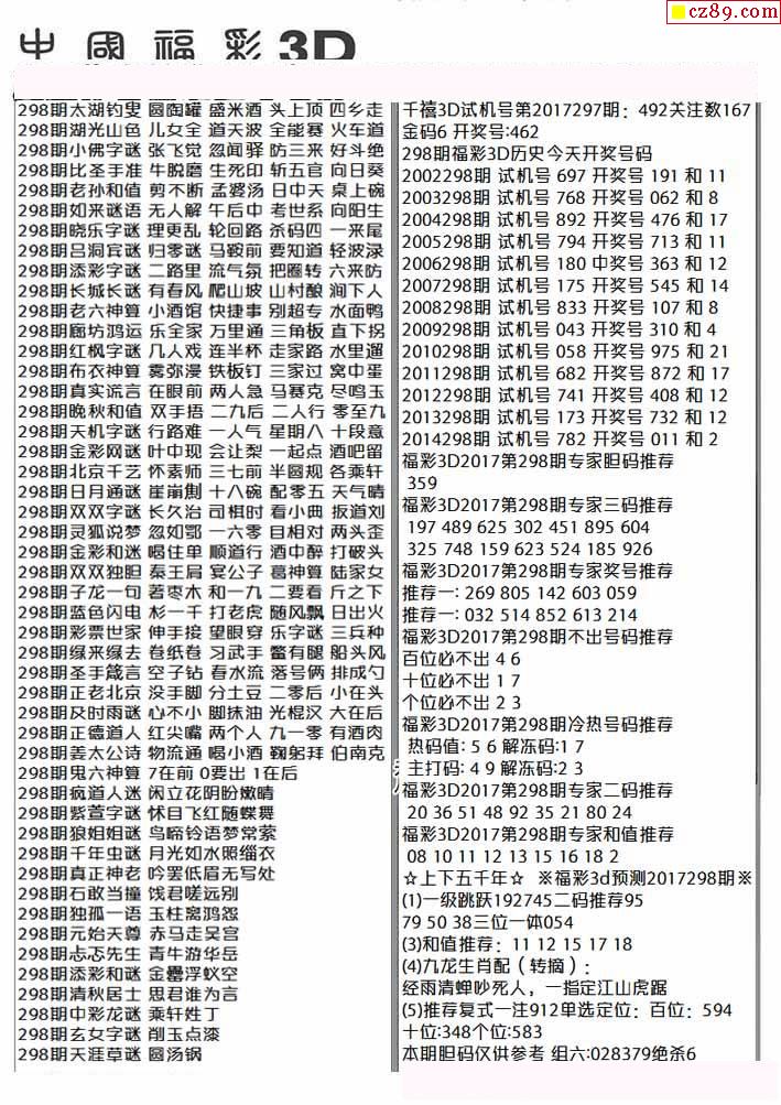 杀手+鑫马快报+字迷汇总25年298期3d图谜