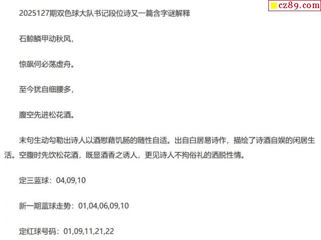 > 25年福彩双色球127期 大队书记段位诗另一篇
